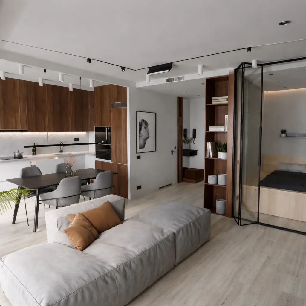 Attraverso demolizioni mirate è stato possibile ampliare la zona giorno, creare una cucina open space con isola centrale e valorizzare gli spazi di servizio, ottenendo un’abitazione più moderna, efficiente e coerente con le esigenze di vita contemporanee.